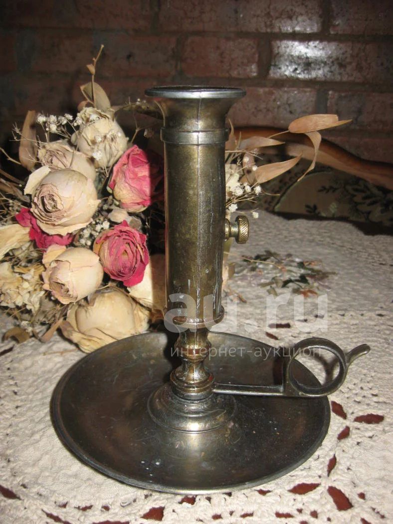 Винтажный подсвечник с ручкой и регулятором высоты свечи, металлический сплав, Европа.