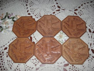 Набор подставок из натуральной кожи с принтами египетской тематики, 6 штук.