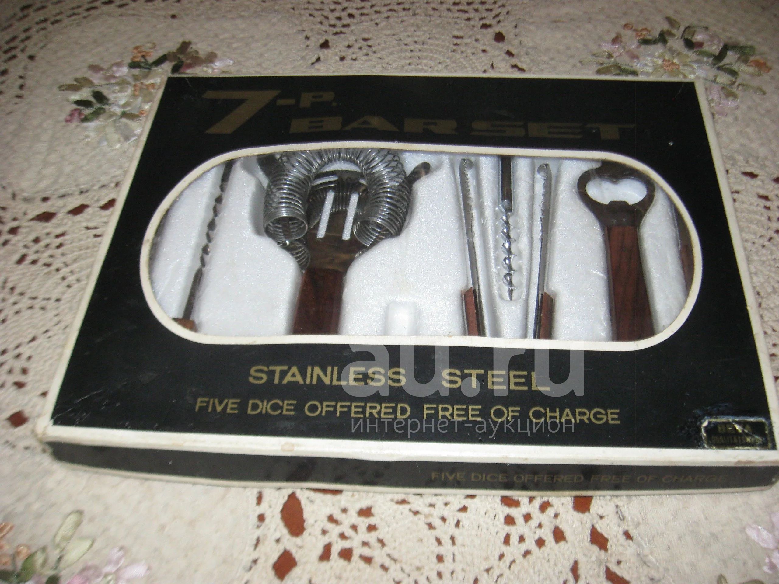 Винтажный барный набор для коктейлей Bar set 7 p. Beva Qualitatsware (7 предметов),клейма нержавеющая сталь(stainless steel), дерево, Германия.