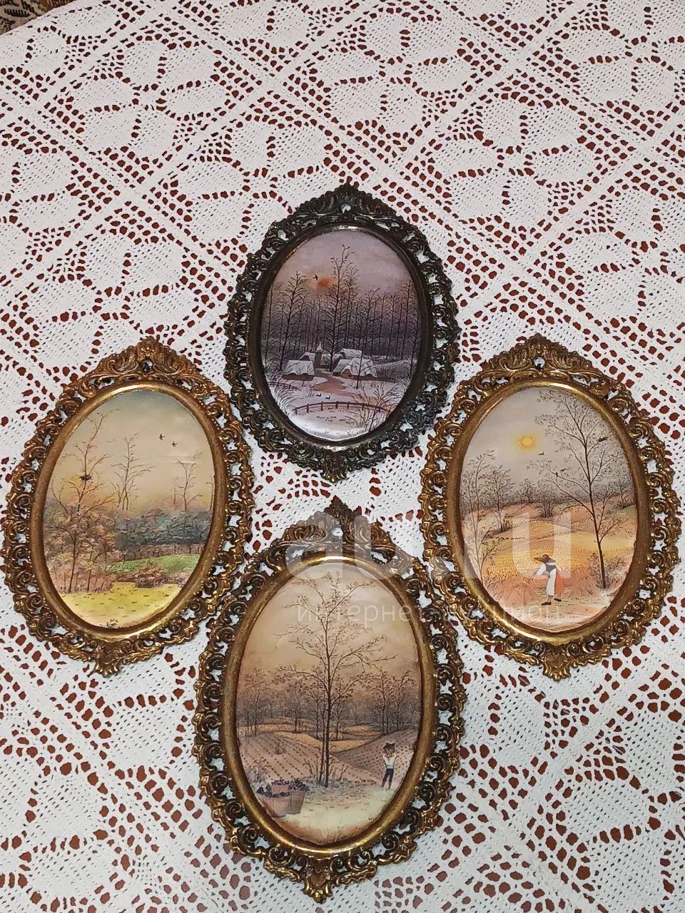 Винтажные картины на шёлке "ВРЕМЕНА ГОДА" в рамках, сплав, Италия,4 шт.