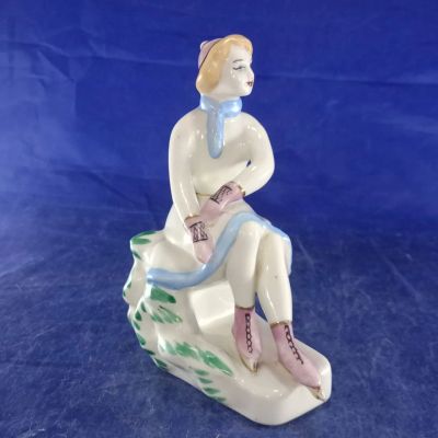 Фарфоровая статуэтка По воду У плетня Девушка с ведром с коромыслом 60-е годы Славянск