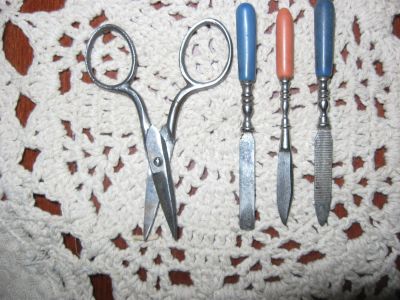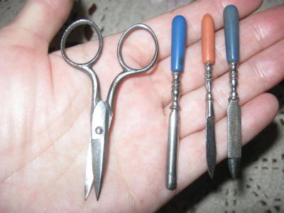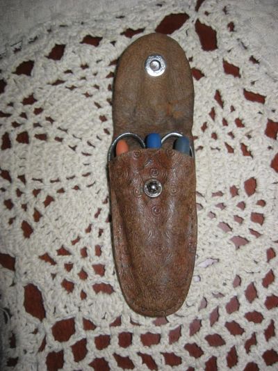 Антикварный маникюрный набор в закрывающемся кожаном чехле Германия