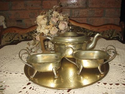 Антикварный кофейный набор 3 предмета глубокое серебрение клейма Англия