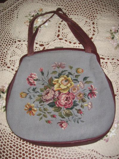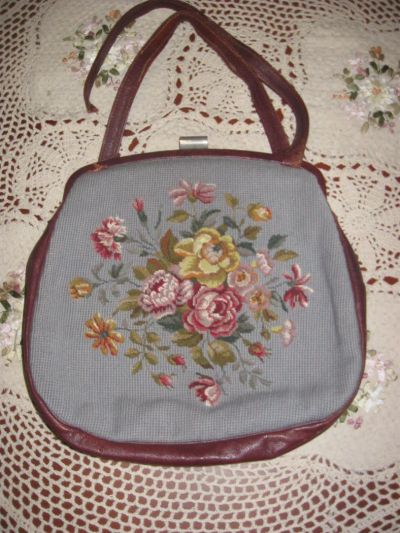 Антикварные сумки дамские вышивка шерстью Petit Рoint ручная работа кожа Европа под реставрацию