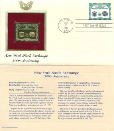 США 1992 КПД с металлической репликой Нью Йорк Фондовая бирда 200 лет Stock Exchange сертификат