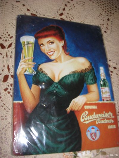 Рекламная настенная картина на жести пиво Budweiser Budvar Германия 2