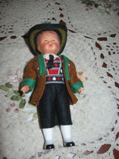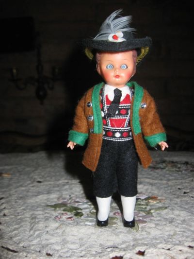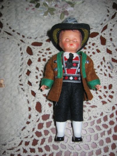 Кукла мальчик в национальном баварском фетровом костюме тортулон Германия