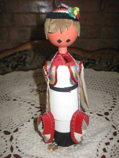 Винтажная сувенирная кукла дерево в национальном мужском костюме Сербии