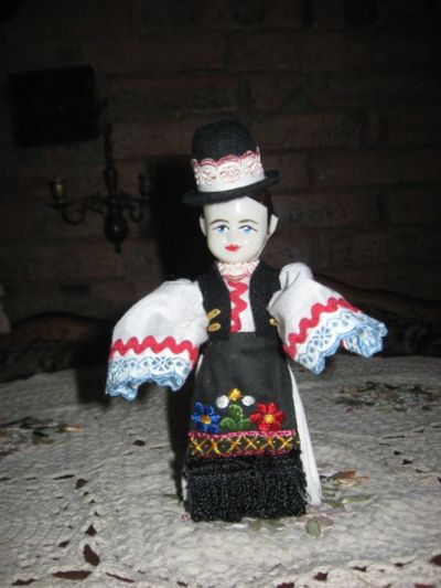 Винтажная сувенирная кукла в национальном мужском венгерском костюме этикетка Венгрия