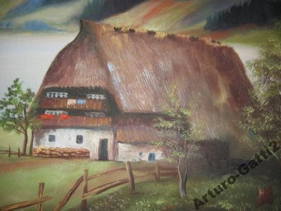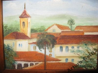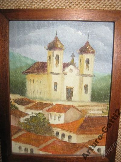 Картина масло холст пейзаж Деревенская церковь 1990 г A.Kupper Европа