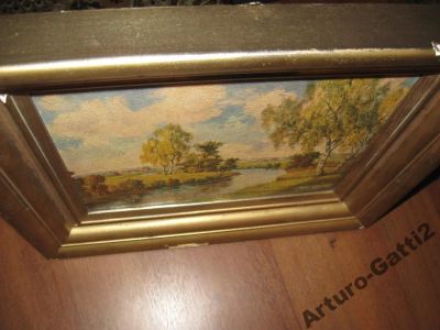 Винтажные мини картинки масло на картоне подпись автора рамки дерево Европа