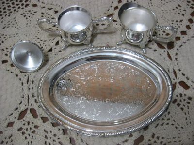 Набор сахарница молочник поднос Silver Plated посеребрение Турция