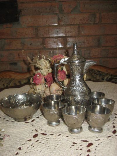 Набор стакан и стопка на подносе олово дерево ZINN 92% клейма Германия