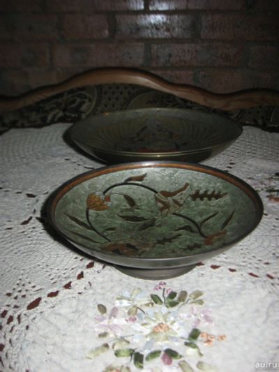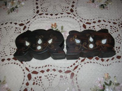 Салфетницы антикварные дерево инкрустация медью и перламутром Германия