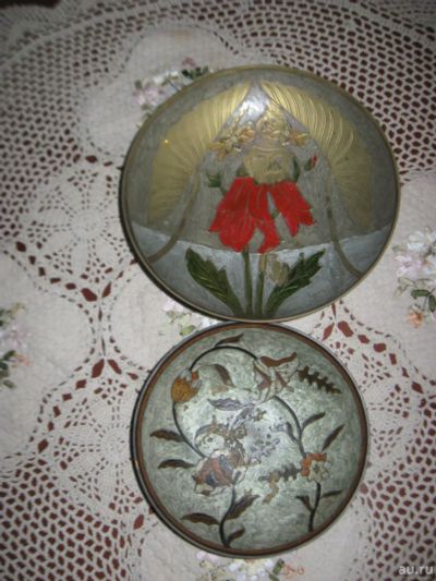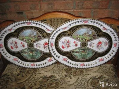 Антикварное блюдо стиль Арт Нуво начало 20 века ручная роспись 2 шт Англия