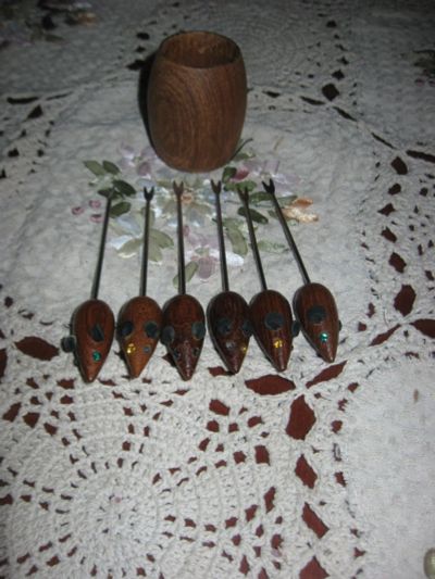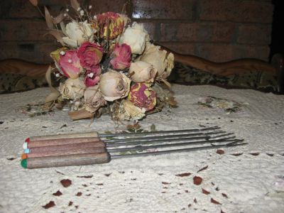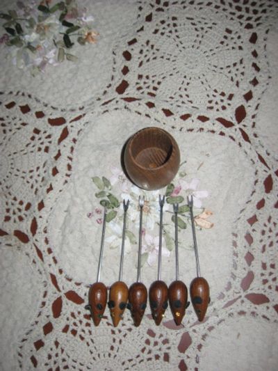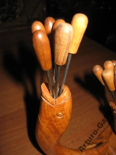 Набор винтажных вилок для фондю металл дерево Германия