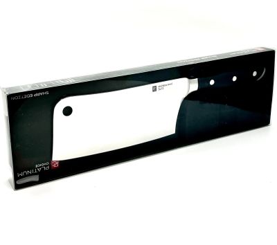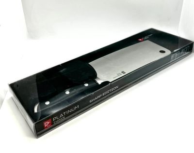 🔪 Топорик кухонный большой поварской из нержавеющей стали с черной ручкой / топор топорики нож ножик ножи кухонные поварские черные ручки сантоку тесак секира для рубки мяса зелени на доске нержавейка нержавейки нерж стальной /