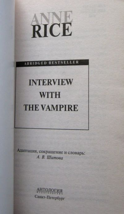 Райс Энн. Интервью с вампиром. Anne Rice "Interview with The Vampire" Книга Для чтения на английском языке