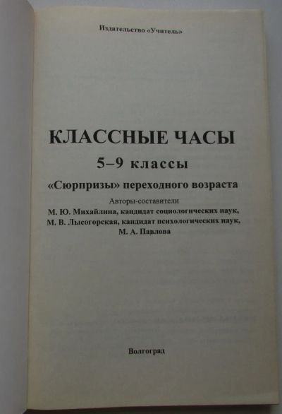 Классные часы. 5-9 классы. "Сюрпризы" переходного возраста. Лысогорская Михайлина Павлова. Волгоград. Учитель. 2009 г.